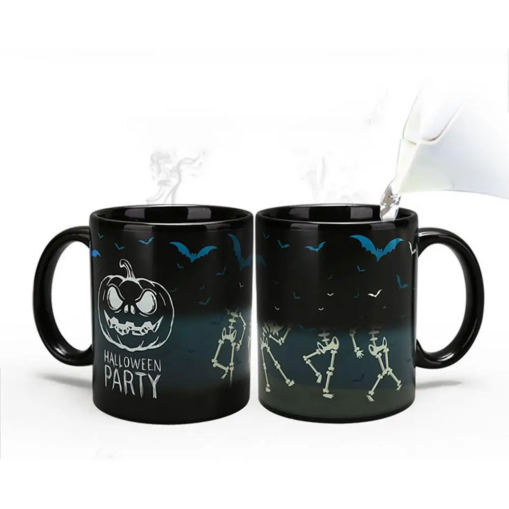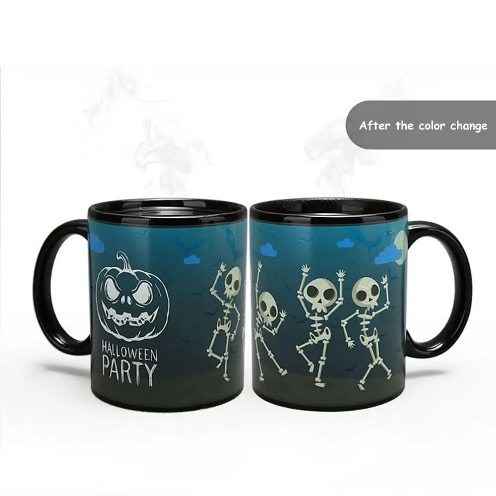 Halloween Magical Color Changing Cup Coffee Mugs Creative Pumpkin Skeleton Pattern Water Cup Halloween Personality Gift